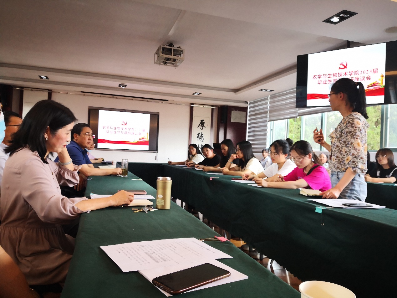 为进一步了解毕业生党员在校期间的情况和毕业后的打算,鼓励他们在不同的岗位上继续发挥模范带头作用,农业与生物技术学院党委于2023年5月23日下午召开了2023届毕业生党员调研座谈会。学院党委书记李富生、院长李建宾、党委副书记安曈昕等教师党员及2023届全体毕业生党员参加会议,会议由组织员寸湘琴主持。