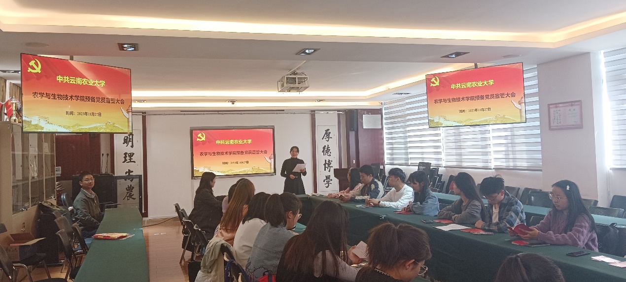 根据发展党员有关工作要求,黑白直播nba-nba直播平台 于2023年11月27日在尚农楼304会议室举行预备党员的入党宣誓仪式。参加人员有学院党委组织委员寸湘琴、党政办公室主任董玉梅、学生第一党支部书记周锋及新接收的预备党员等20多人。