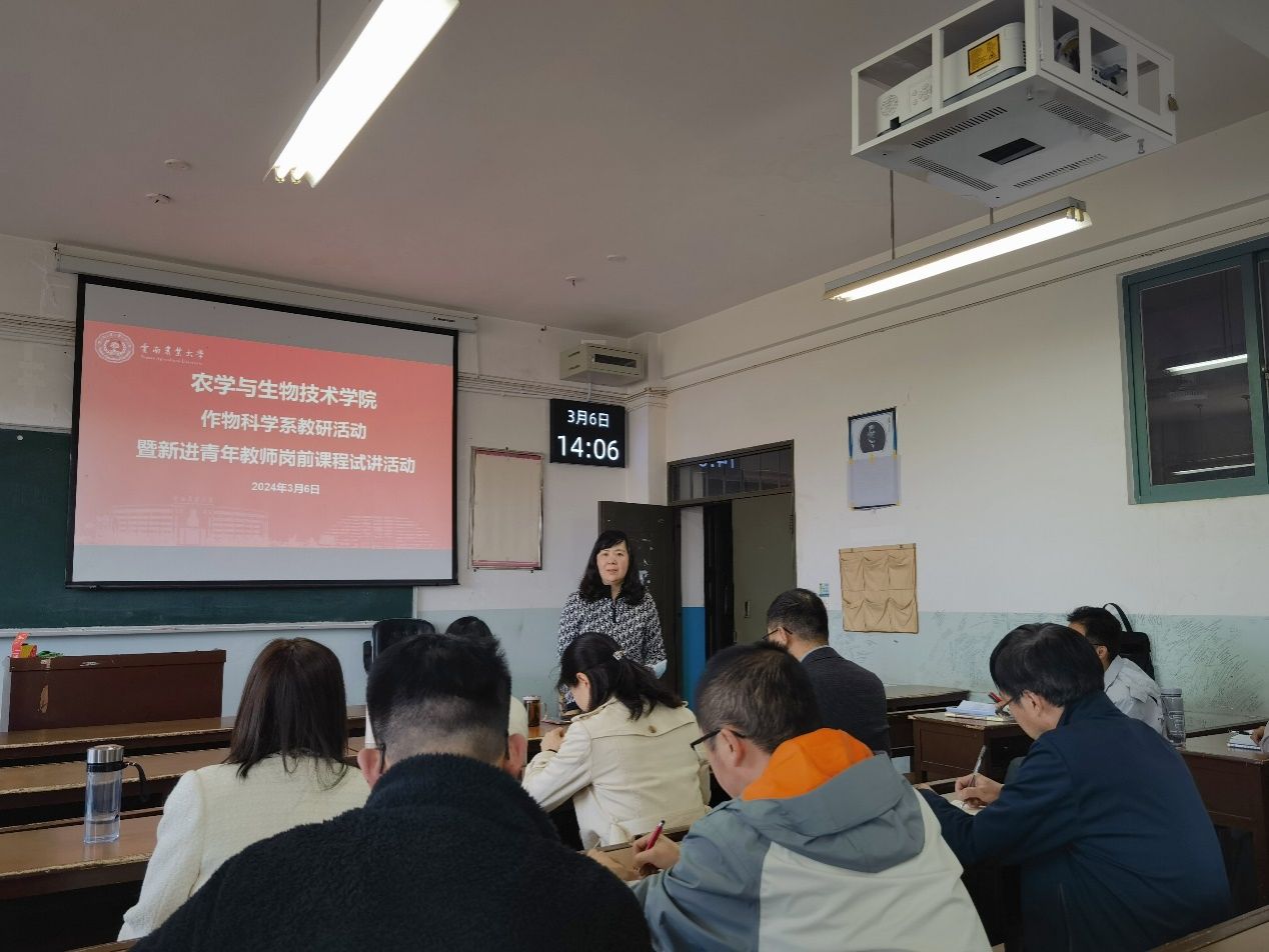 本站消息 为提高新入职教师的课堂教学水平和教学组织能力,保障教学质量,202436日作物科学系组织3位新入职的教师在尚农楼4-11教室开展课程试讲教研活动。作物科学系全体教师及分管教学工作的副院长周平教授参加了本次教研活动。