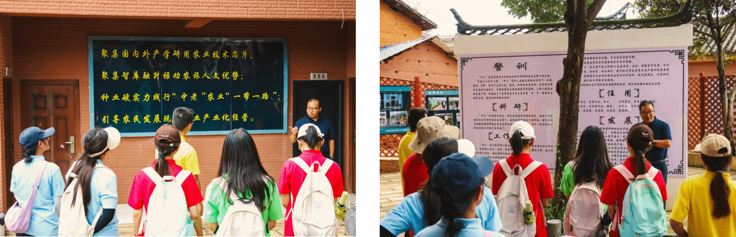 在引智专家墙背面,书写着发展中心的警训,上面写道:中心是在高度专业和发达的种子科研体系的支持下诞生的。中心的育种目标是农民的利益和市场的需求,在杂交选育和分子育种技术的支持下,在新品种开发的早期阶段,我们会通过检验来辨别哪些是希望获得的品种,并在上市之前另一些更新的品种的研发工作就开始了。以发展的眼光来看待科研成果的开发,敢于假设,小心求证,接受失败,速查原因,不断改进。经过参观学习,实践队员们深刻认识到工作站的定位与发展,不仅为当地农民为禄劝的发展提供了技术支持,也为云南农业大学师生提供了科研实验平台。