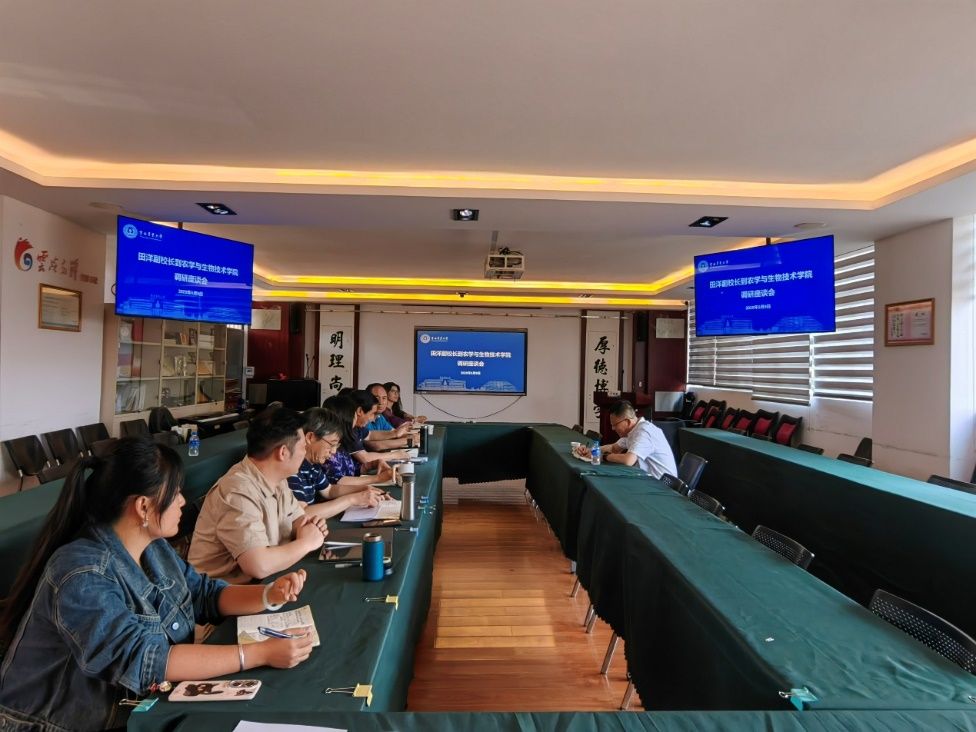 田副校长对学院工作给予充分肯定,认为学院各项工作开展扎实、有效,为学校的发展做出了一定的贡献,并对学院下一步发展提出了几点建议:一是要深入贯彻中央八项规定精神,深入推进党建引领学院高质量发展工作更上一个新台阶;二是以习近平总书记考察云南时发表的重要讲话精神为指引,结合云南特色产业、地域优势和国家政策机遇,贯彻落实学科专业建设、特色科研项目研究等重点工作;三是做好科研团队建设,完善激励机制,调动教职工的工作热情和积极性;四是围绕种业振兴,进一步发展种质资源创新,突显学院的标志性成果。