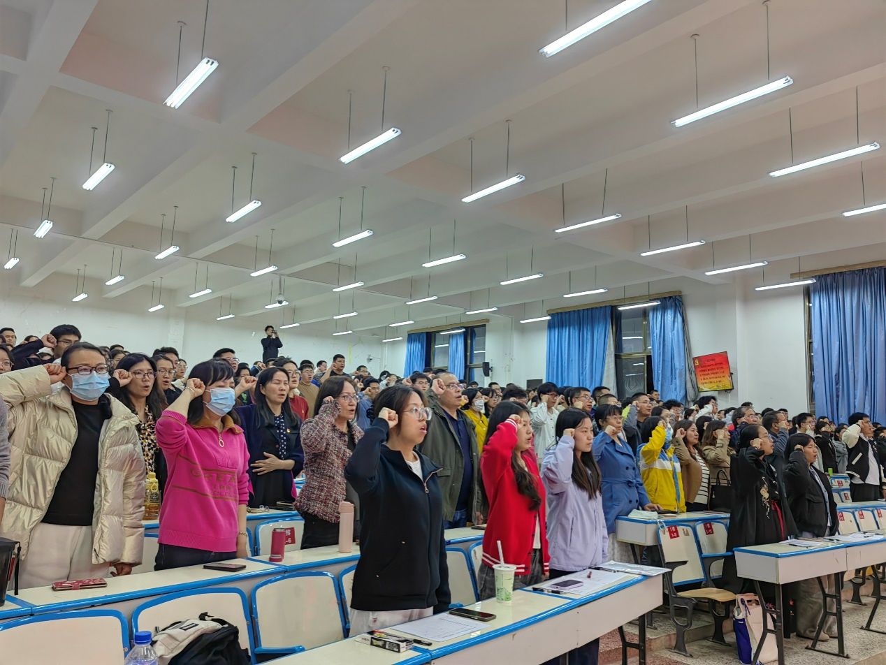 党委开展了为期三天的党员集中教育培训,学院各党支部共200余名党员参加学习。培训开班仪式由党委组织员寸湘琴主持,全体与会党员面向党旗,庄严重温入党誓词,院党委书记李富生作了动员讲话。