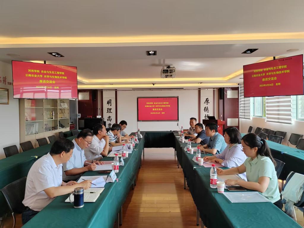 对马银山一行到访表示热烈欢迎。接着,双方分别围绕两所学院的发展历史、学科和专业建设、科研成果及转化,及教育教学等情况作了介绍。会上马银山还对河西学院种子科学与工程专业本科人才培养方案及农艺与种业领域农业硕士专业学位研究生培养方案做了详细介绍。大家就“新农科”发展背景下,农学类学科“跨学科”融合发展的必要性与迫切性,学科特色建设,专业发展愿景以及寻求两学院学科间的深度合作意愿等方面进行了深入的交流与探讨。双方就专业硕士点建设和本科人才培养提出了建设性意见和建议,均表示愿意寻求学科优势、人才优势、区位与资源的优势互补,不断提高人才培养和教育教学质量。