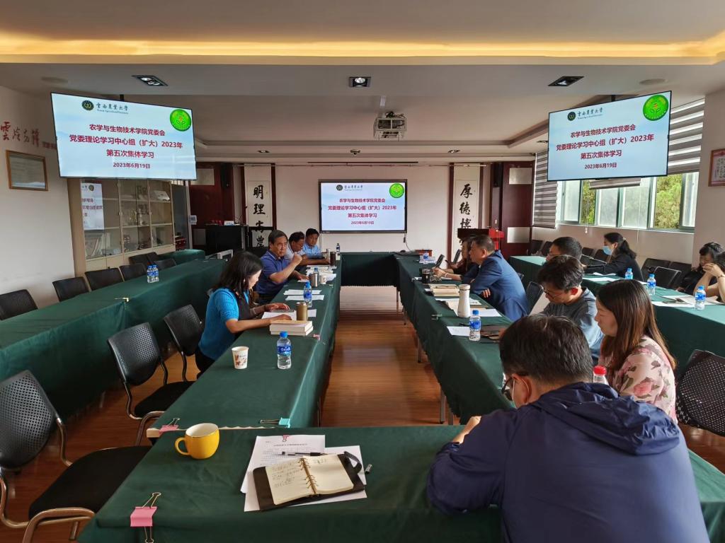 党委理论学习中心组(扩大)以学习落实《云南农业大学关于开展2023年“树师德 正师风 铸师魂”师德师风专项整治的实施方案》和《关于落实“固堤行动”深入纠治违规吃喝和公款旅游或变相公款旅游等问题的工作提醒》为主题开展第五次集体学习。会议由党委书记李富生主持,党委委员、领导班子、各党支书记、各系、所、中心和室负责人参加学习。