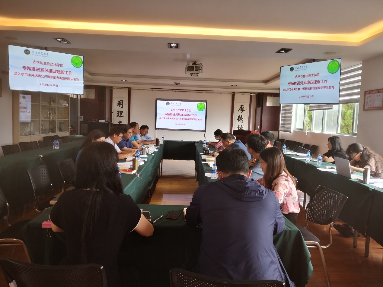 学院党委班子根据深化推进“清廉学校”建设系列行动工作方案(校党发〔2023〕38号)要求,结合“学习贯彻习近平新时代中国特色社会主义思想主题教育读书班”集中自学情况,李建宾院长领学了《云南农业大学关于开展2023年“树师德 正师风 铸师魂”师德师风专项整治的实施方案》,李富生书记领学了《关于落实“固堤行动”深入纠治违规吃喝和公款旅游或变相公款旅游等问题的工作提醒》,并按附件4以“小”见严纠“四风”“固堤行动”工作清单(三)(师德师风整治单元)的政治学习要求,开展了“专题推进党风廉政建设工作——深入学习中央纪委公开通报典型案例警示教育”,同时部署了纪委下发的《关于持之以恒正风肃纪确保 2023 年“五一”端午期间风清气正的工作提醒函》、《落实“固堤行动”深入纠治违规吃喝和公款旅游或变相公款旅游等问题的工作提醒》“固堤行动”推进工作。