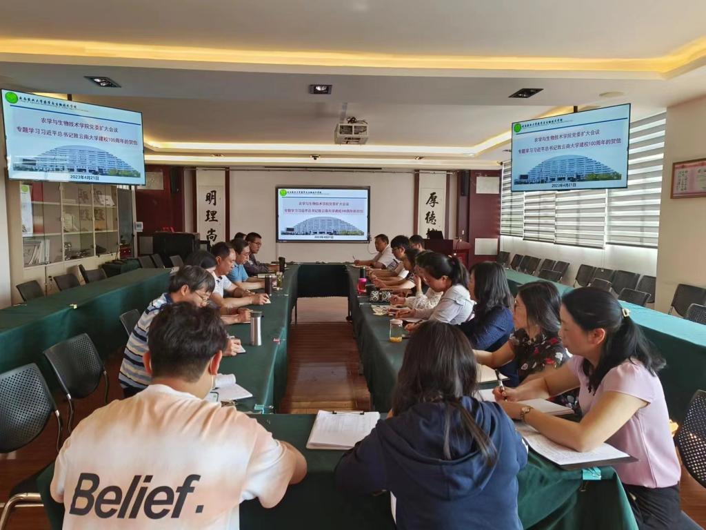 的各部门负责人和各支部书记以及领导班子成员在304会议室召开了党委会扩大会议,专题学习习近平总书记致云南大学建校100周年的贺信(以下简称“贺信”)。会议由院党委书记李富生主持,党委委员、领导班子、各党支书记、各系、所、中心和室负责人参加学习。