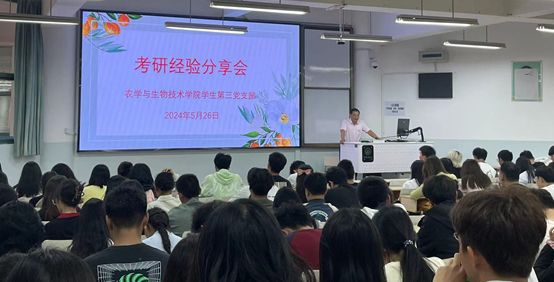 学生第三党支部在尚农楼1-18召开了“考研经验分享会”,旨在帮助低年级同学深入了解考研过程,激发同学们的考研热情,做到学习帮扶。除支部党员同志外,还有2021级、2022级及2023级种子科学工程专业有考研意向的同学共180余人参加了本次活动。