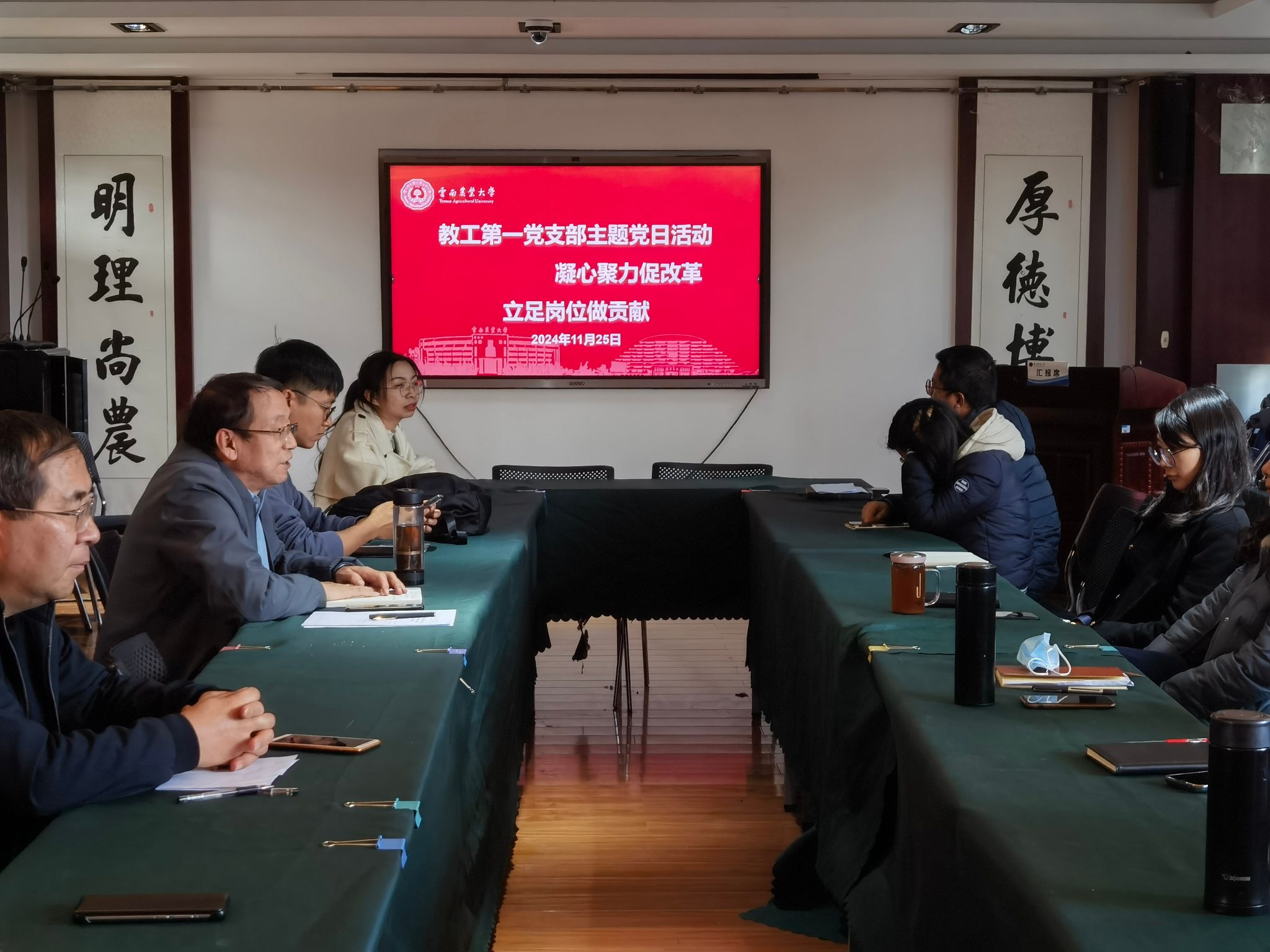 教工第一党支部主题党日活动在尚农楼304室举行,本次会议以“凝心聚力促改革,立足岗位做贡献”为主题,聚焦党的二十届三中全会精神以及学校发展战略,全体党员齐聚一堂,表达了为促进高质量发展贡献力量的决心与方向。