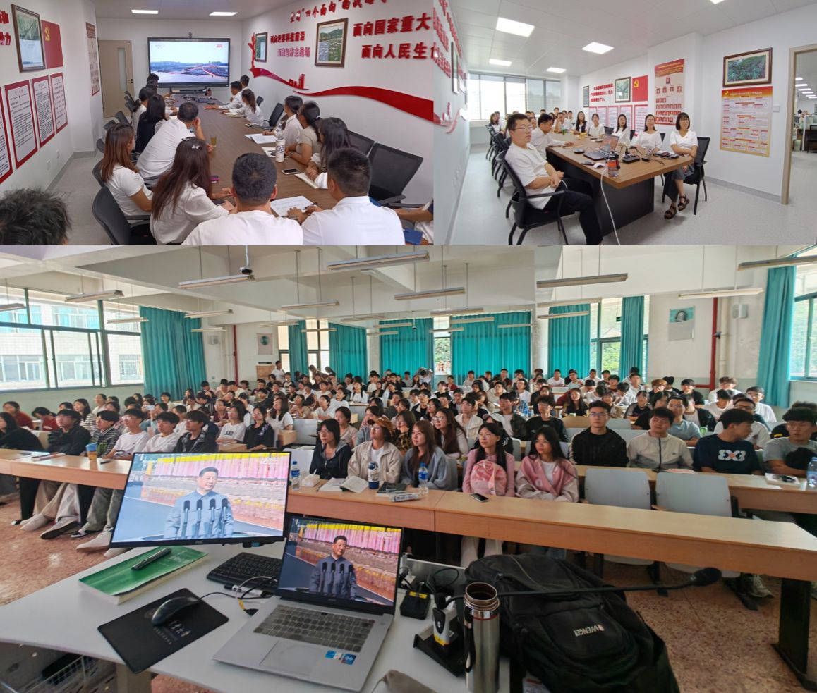 本站消息:93日,黑白直播nba 党委在尚农楼、至诚楼的会议室,在厚德楼、逸夫楼等教室与学校主会场同步的所有班级、团支部,和8个师生党支部分会场,集中收看纪念中国人民抗日战争暨世界反法西斯战争胜利80周年大会直播。因病、因事未能到场的师生通过官方在线平台同步收看。学院领导班子与全体师生共同聆听习近平总书记重要讲话,重温抗战历史,砥砺兴农使命。