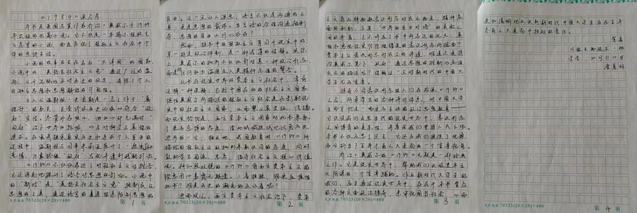 文字是直抵心灵深处的诉说,人的所思所想流淌于笔端,本次活动中,参加活动的同学们从新颖而独特的角度深刻解读书籍,用独特的构思和优美的文笔来抒发他们的情感。他们不仅仅是向大家推荐了一本本具有可读性的书籍,同时也向大家展示了他们浓厚的文学素养。