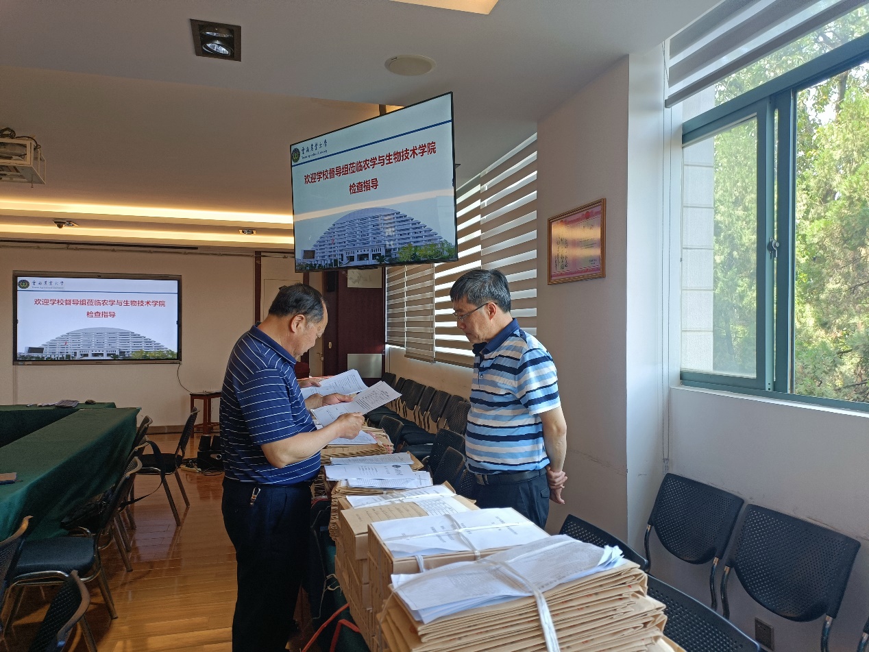 随后,督导组查阅了包括试卷及论文等档案归档情况、材料与专业匹配度、课程目标是否完善、自查及整改情况。督导组的各位专家细心翻看、认真查阅,提出试卷及论文中需要注意的细节问题,进一步帮助学院查漏补缺。