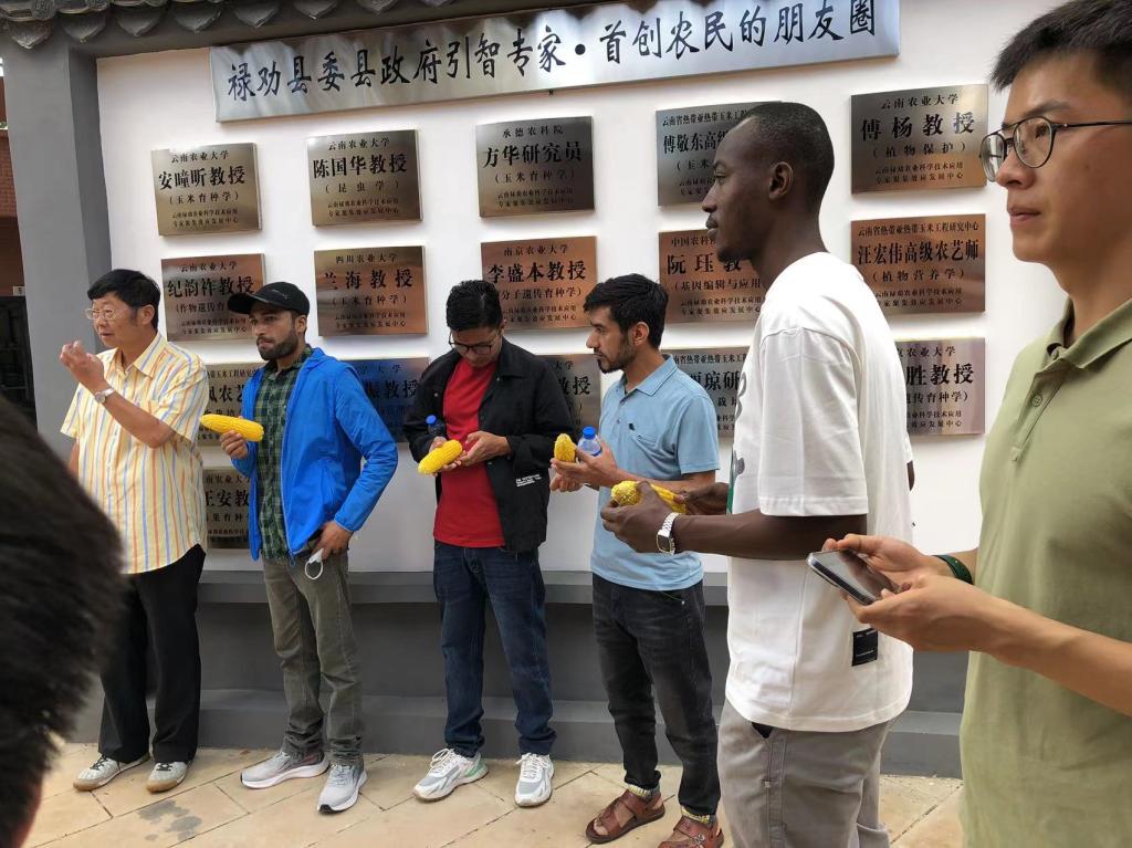 首先,禄劝县人民政府和我校纪韵祚教授对留学生的到来表示热烈的欢迎,并向同学们介绍禄劝县委县政府引智专家墙,随后邀请留学生们品尝了自主选育的甜玉米品种,受到了留学生们高度评价。